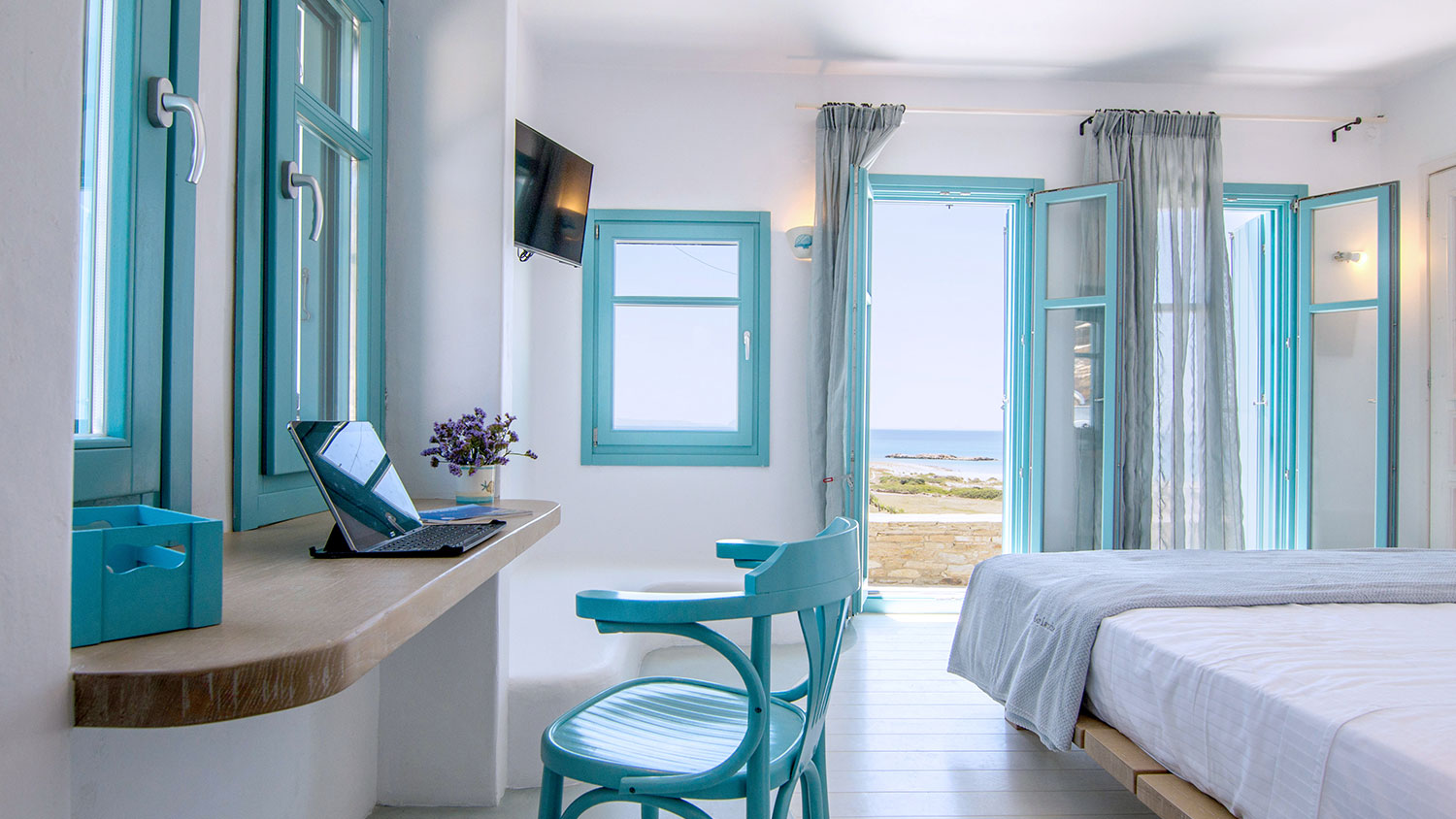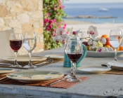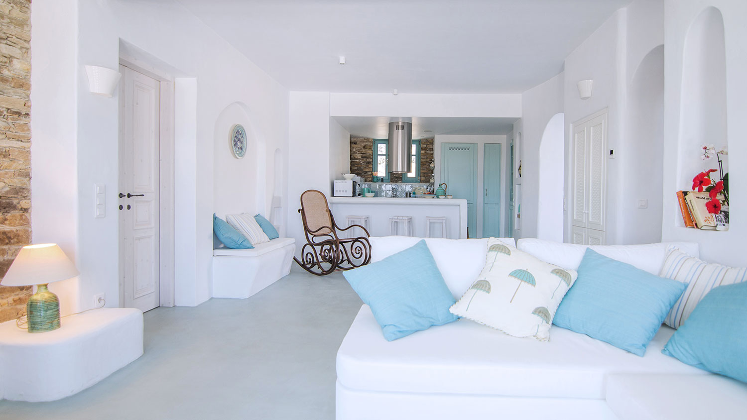 Exterior view of Magganari View Villa with infinity pool and sea view in Magganari Bay, Ios